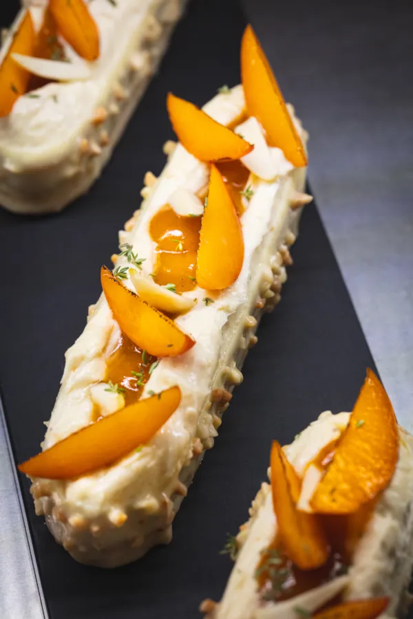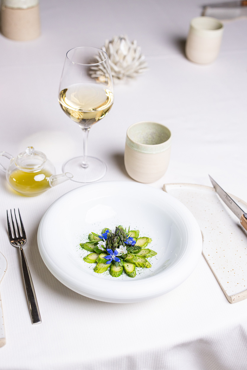 Hauptgericht am Tisch serviert – Fleisch oder Fisch (+ vegetarische Option)